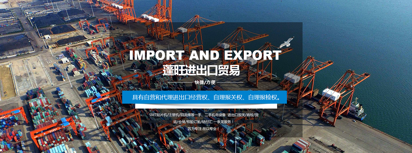 東莞市蓬旺進出口貿易有限公司成立于2005年,已專注于新舊設備進出口代理服務16年余載,致力于為客戶提供優質的SMT貼片機/注塑機/回流焊等一手、二手機電設備 進出口報關/商檢/貨運/倉儲/租船訂艙/結付匯 一條龍服務!